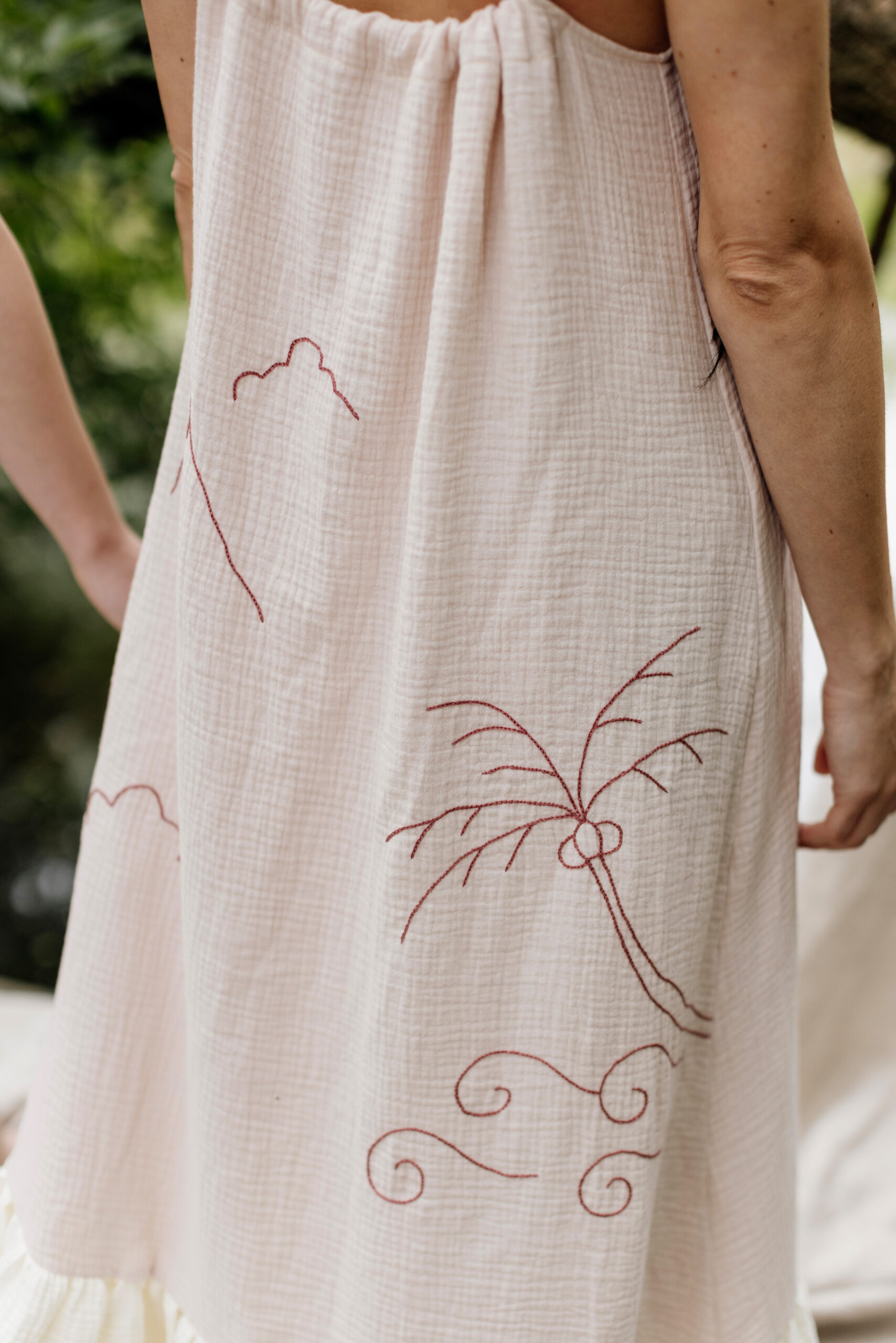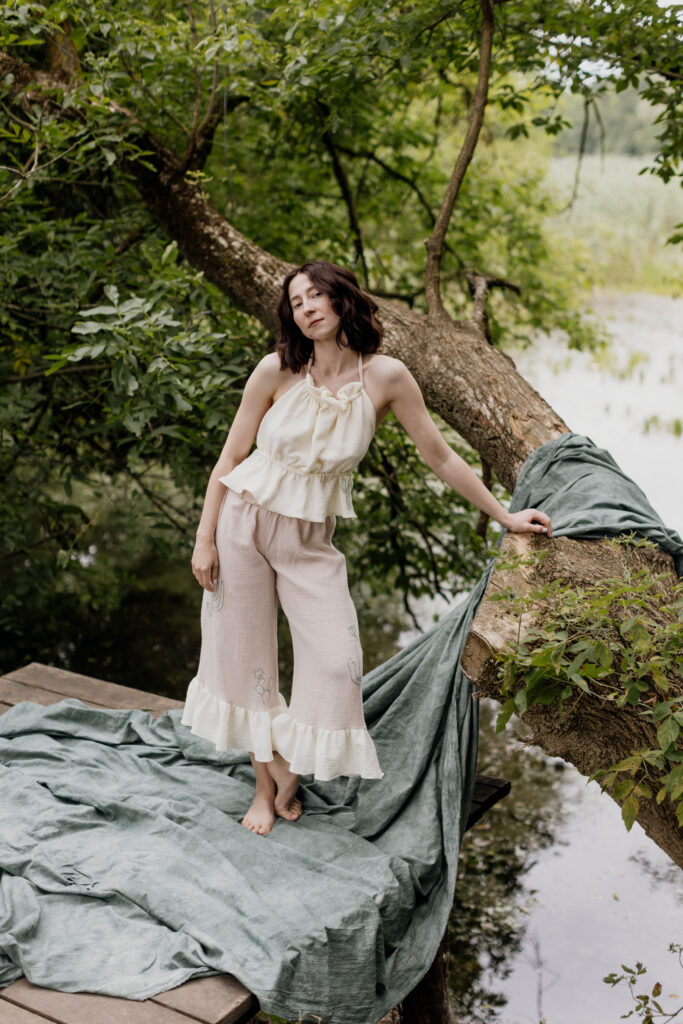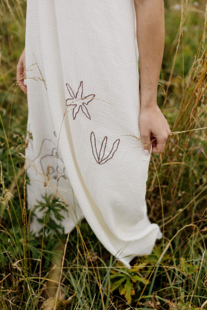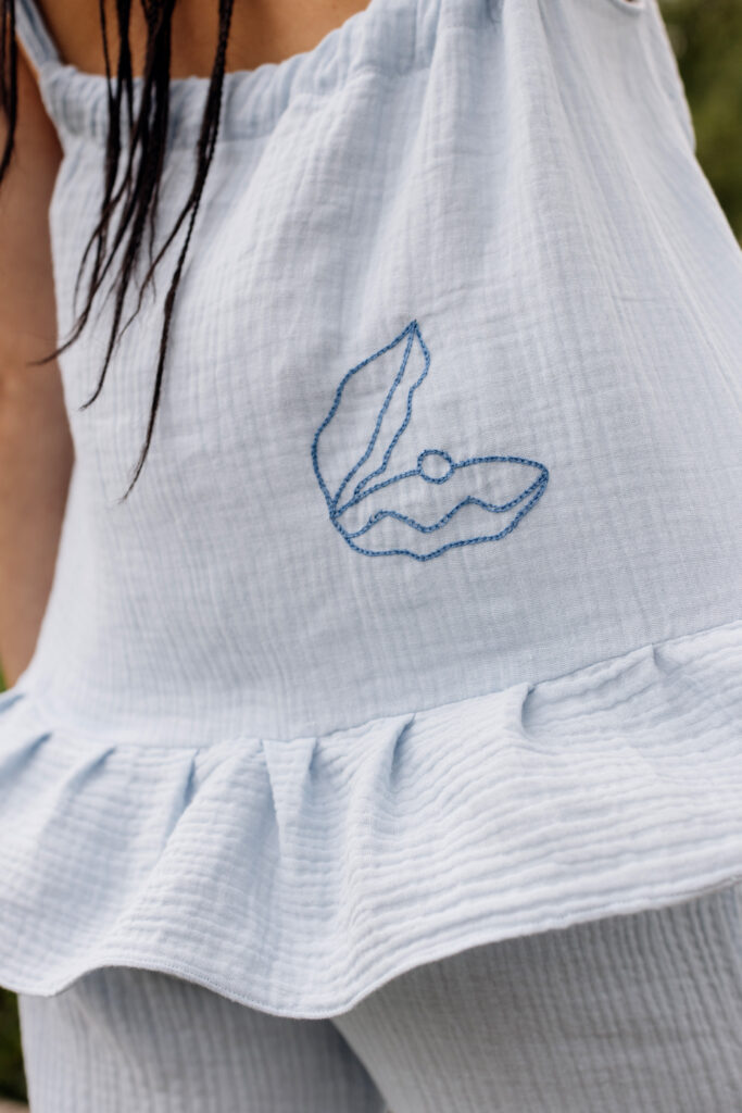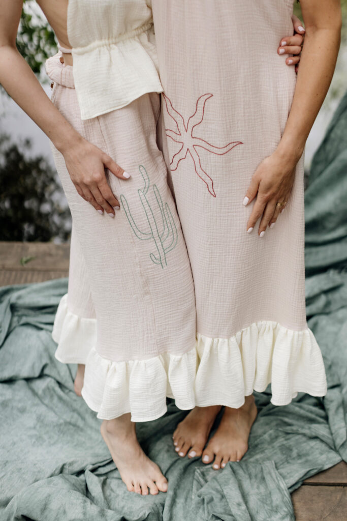Nasza trzecia współpraca to celebracja lata, lekkości i rękodzieła. Razem z gościnią Bądź mi — Kingą Świeściak — stworzyłyśmy unikatową kolekcję muślinowych sukienek i kompletów, które otulają niczym delikatna pierzynka. Kinga zadebiutowała jako projektantka krojów i krawcowa, a ja — zaprojektowałam i ręcznie wyhaftowałam wzory, by nadać każdemu ubraniu wyjątkowy charakter.