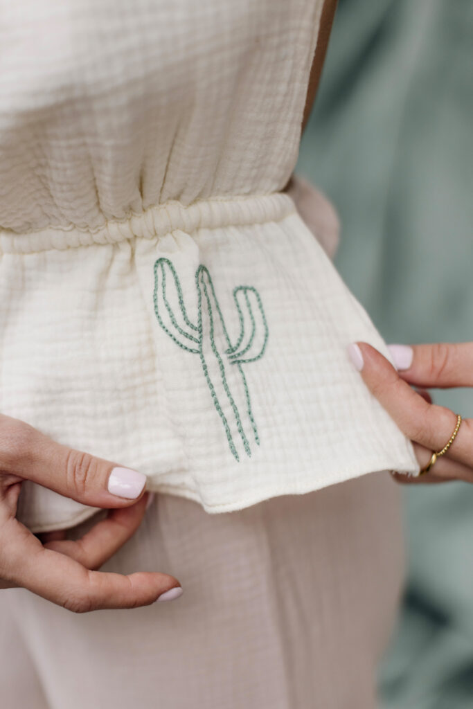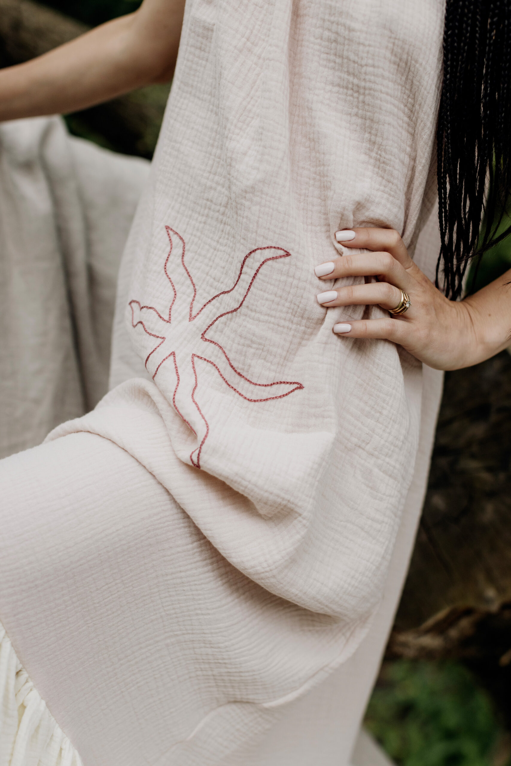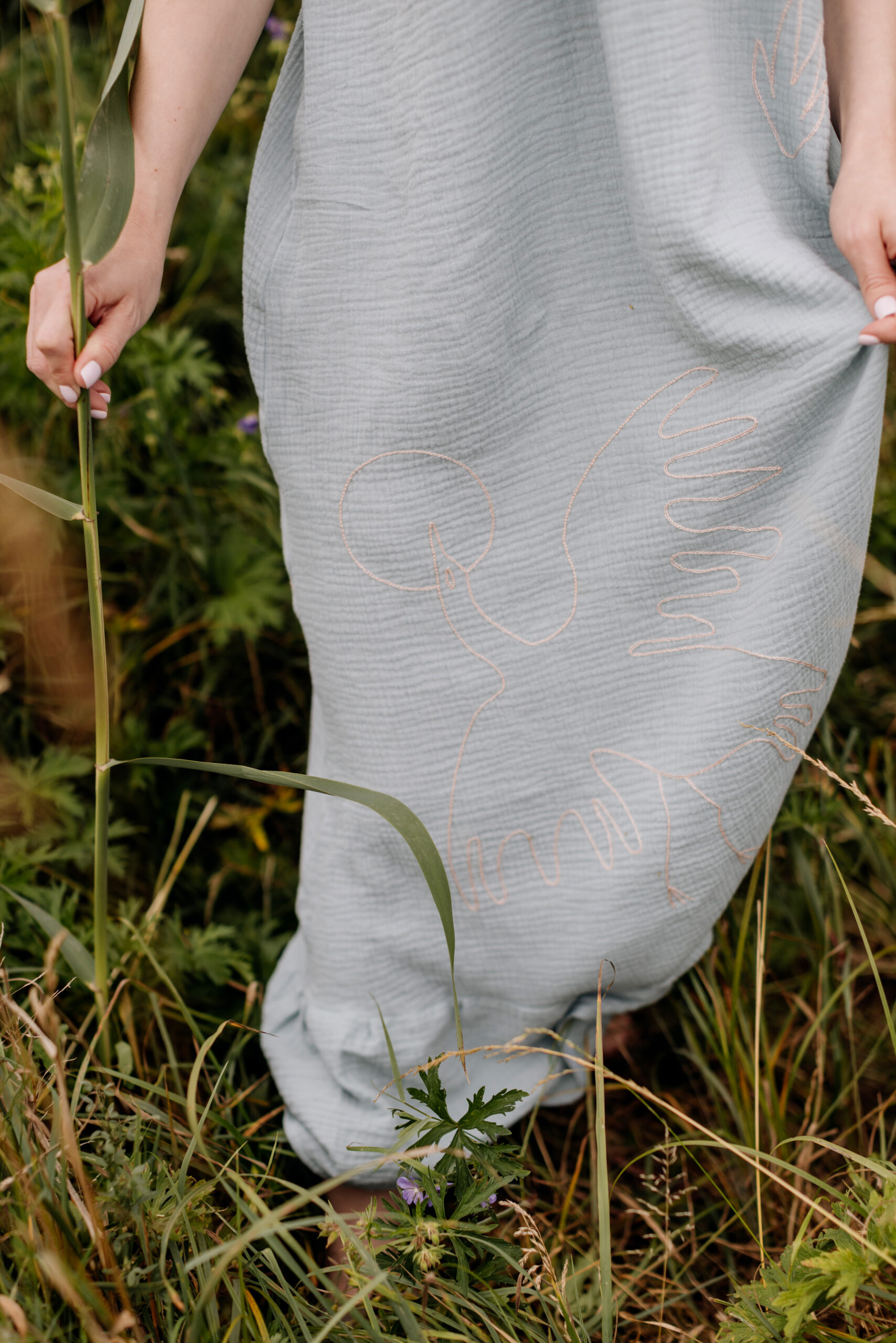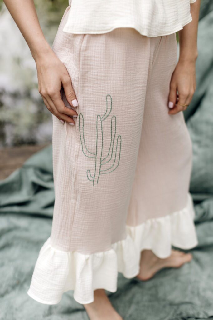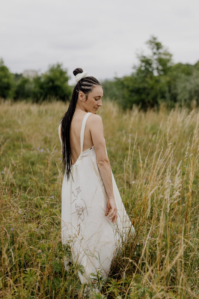 Nasza trzecia współpraca to celebracja lata, lekkości i rękodzieła. Razem z gościnią Bądź mi — Kingą Świeściak — stworzyłyśmy unikatową kolekcję muślinowych sukienek i kompletów, które otulają niczym delikatna pierzynka. Kinga zadebiutowała jako projektantka krojów i krawcowa, a ja — zaprojektowałam i ręcznie wyhaftowałam wzory, by nadać każdemu ubraniu wyjątkowy charakter.