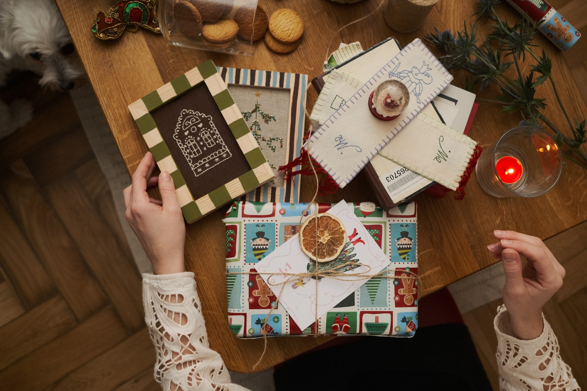Każdy pierniczek jest ręcznie haftowany i oprawiony w drewnianą ramkę.