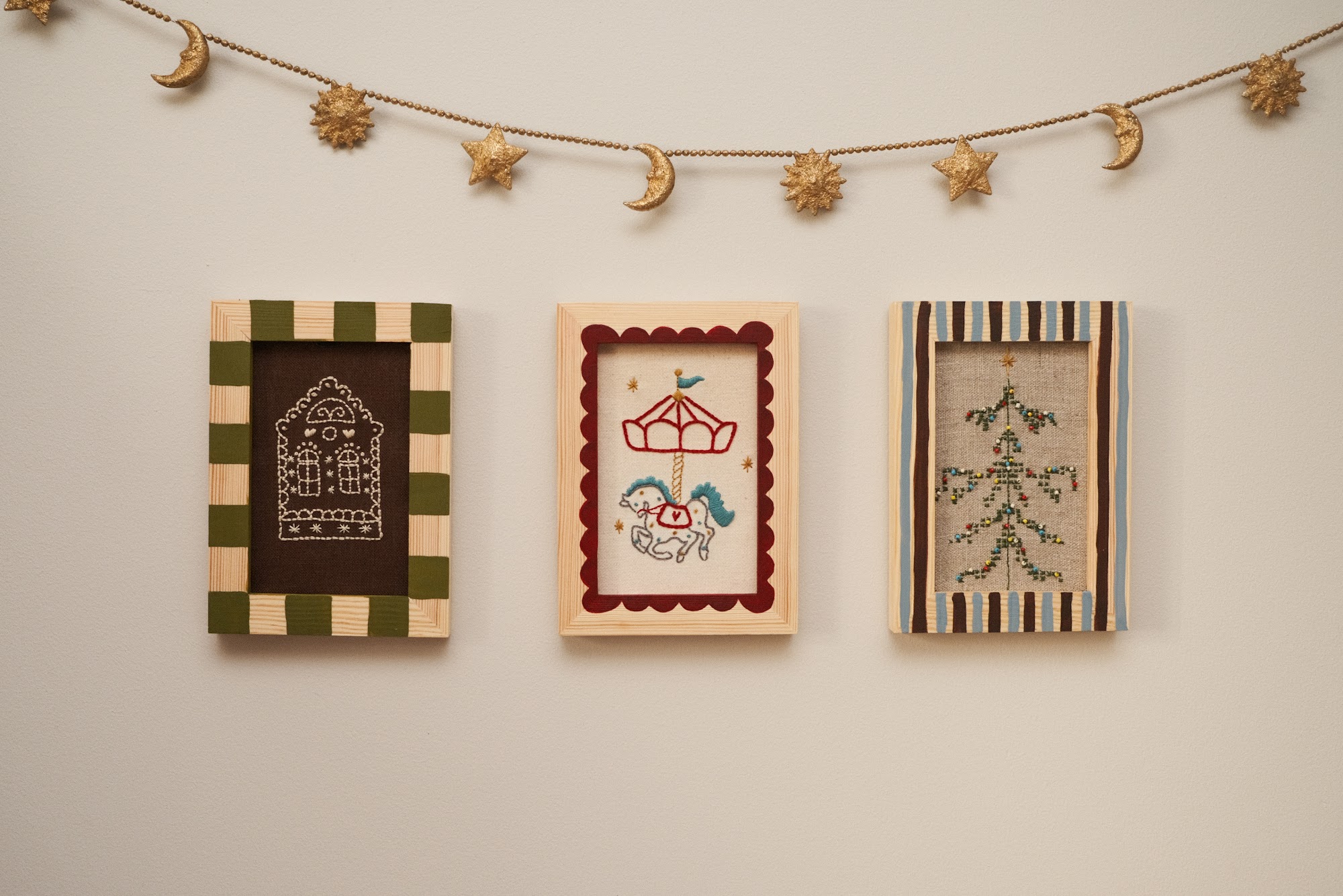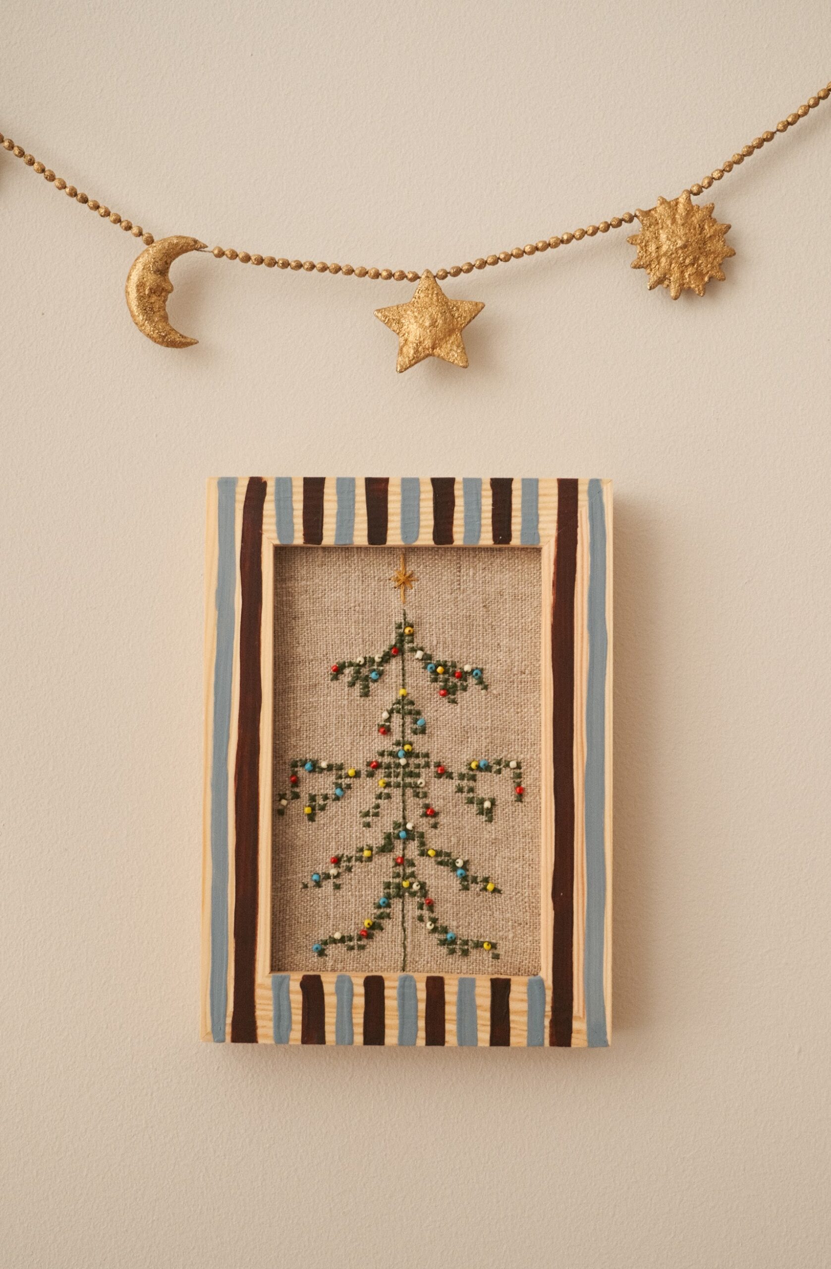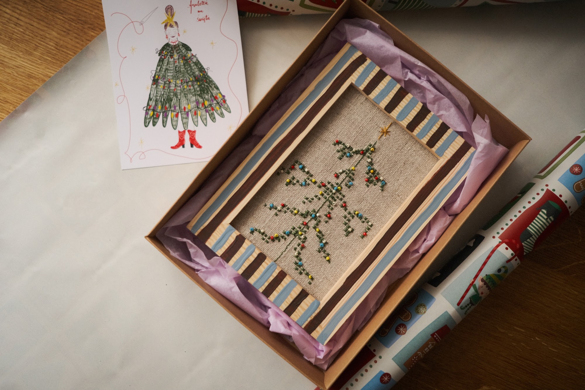 Ręcznie haftowana choinka – idealny akcent do świątecznego wnętrza.