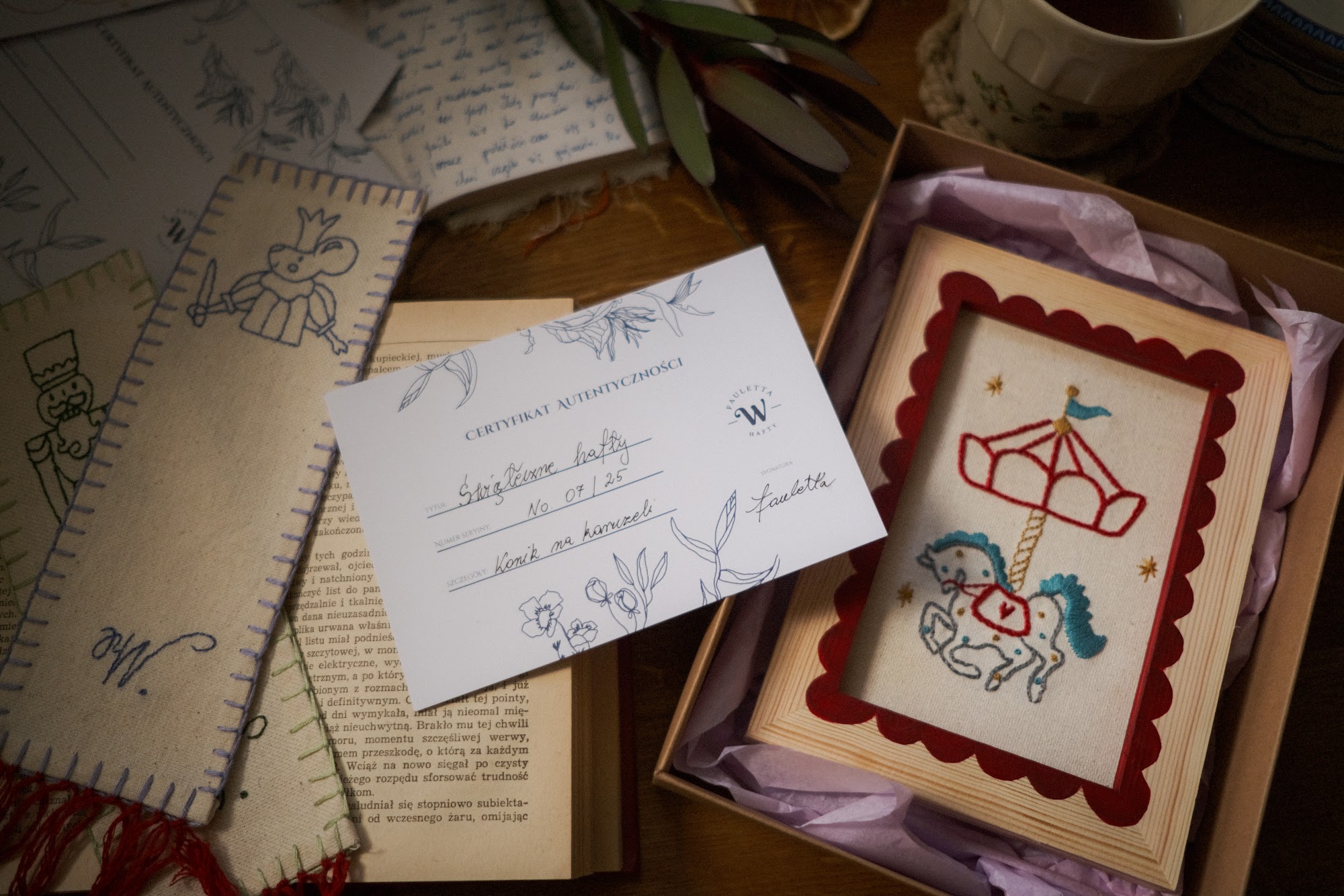 Haftowana ramka „Konik na karuzeli”
